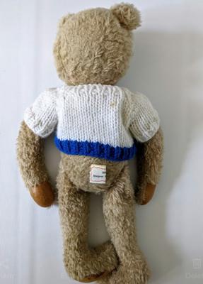 Despite my best efforts I can not find any information on this bear. He is a very light Ecru color and has quite soft, and I suspect synthetic fur.