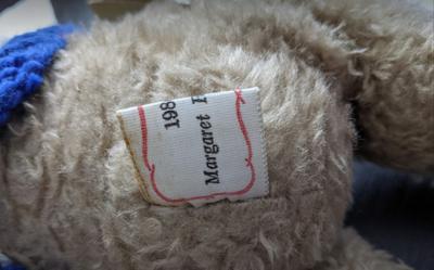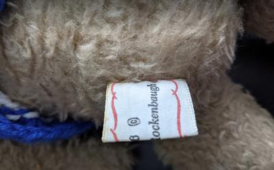 I recently came across a large weighted teddy bear at a garage sale. This bear is about 18" long. This bear weight over 4 lbs and is jointed at the head, legs, and arms. The only writing on the tag says: 1986 Margaret Rockenbaugh.