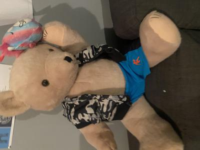 Quite large, light brown, metal bracketed movable joints and head, and heavy.