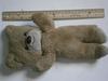 I got this bear in the early 2000s from the nursery at my church when I lived in NJ. He is tan in color with a lighter tan muzzle of a similar material to the rest of his fur. He has no pads on his upper limbs and the bottom limb pads are the same material as the muzzle. All the fur is synthetic. His eyes appear to be plastic with grey-ish brown irises. Nose is dark brown plastic, and his mouth is brown thread. He also has the remnants of a cut off tag on his left hip. He is now 11 1/2 to 12 inches long but he has been squished around quite a bit. I can't really say much about the stuffing except that it is still pretty solid and is probably synthetic.