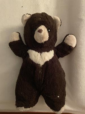 Dark brown 9" teddy bear w white paws, ears, snout, chest patch. Given probably by my grandma circa 1982-89. I have lovingly called this bear higgins bear my whole life, as long as I can remember. However, I have no idea if this is because it said that on the tag or because I was an imaginative child. I believe this was from my grandmother from Pennsylvania. I cannot find anything online with all the same white markings- ears, snout, paws, AND chest. I think it is about 9", dark brown.... please help! I would love your input very much. My daughter now loves this bear and I would like to know what it is (maker, model, year, etc).