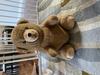 I have had this teddy bear for as long as I remember. I was born in 1994, but some of my stuffed animals are from the late 70's to mid 80's He is old and well loved, but unfortunately he has no tags whatsoever. His eyes and nose are plastic. His mouth is made our of thick stitched thread. He has 2 seams on the top of his head, one on the back of the head and one all the way down the middle of his back. He is an odd shape - not typical teddy bear shaped. His limbs don't move and he is not flat, if that makes any sense. He is always in a sitting position. My twin had had the same bear as well, but lighter in color and one of his plastic brown eyes turned an opaque blue when she left it in a hot car - kind of ironic since my twin is blind and had a cataract in one eye - just like her teddy bear!
