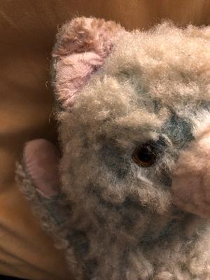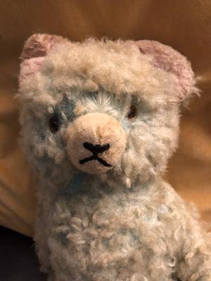 Hi, my sister and I came across Farmsen in the town of Farmsen-Berne in the city of Hamburg in 1985. We were out walking near the station, when a beggar woman tried to sell him to us. At first we ignored her but then I felt sorry for him and couldn’t leave him there so we ended up paying 8 Marks for him. Our German friends thought we were bonkers as he was old and very grubby! Needless to say we bought him back to England and he still lives with me. He is 17 inches long and covered in blue, matted fur. His paws and ears are pink. He is stuffed with straw, has jointed arms and legs. It looks like his head has been stitched back on at some point in the distant past. He looks sad 😔. I would really love to find out more about him if anyone can help? Many thanks. Nicky