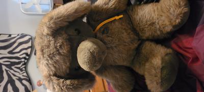 I have a Gund dark grey/brown elephant. Sitting elephant? As it has no tail. No tusks either. Black gund tag on chest as well as yellow rope around neck. Tag on back side reads Classic Collectors limited edition. Edison, NJ 08717. Also has number 2287. Co.1979 GUND Inc. Bottom of feet are dark grey and soft as well as around the eyes and trunk is same material. Tag is missing from year..only clear plastic piece remains. The remaining hair is course feeling to the touch. Elephant is a plush. It has blak hard plastic eyes. Yellow rope is attached at the neck on both sides and hangs down the front about five inches. I know there bear has to be at least 30 years old as it originally belonged to a friend when he was a child. Elephant is approximately 24 inches long and when sitting it is about 16 inches tall.