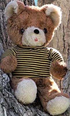 I would dearly like to know how rare my teddy bear is and if he is valuable. To me he is priceless, of course, because I have had him for so very long, but wonder if he is would be worth something to a collector. I have found no other teddy on-line that looks any where close to what he looks like. I found and bought this Teddy Bear while wondering around a two story strip mall on the East side of Wichita, Kansas, U.S.A. He was just so cute that I could not resist taking him home with me. He was in a Hallmark greeting card and gift store that was in the mall. I know that it was within the first three months of the year 1978 when I got him, but I am not sure if it was January, February or March. I think it was mid February and I am extremely sure that it was sometime before the 15th of March. There is no longer any kind of identification on him. No tags of any kind to indicate what company made him (although since he was bought at a Hallmark store, I take for granted they were the makers) or when he was made. I do not remember how much I paid for him either. He has a long sleeved black and yellow striped shirt that is a part of him. The shirt is sewn on like a part of his