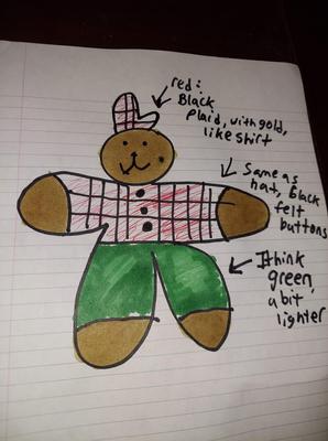 So my friend is looking for a bear that was donated to her in 2005-2006. They said it was a flattish star shaped brown bear. The clothes were actually made into the bears body. She shirt was a red and black plaid with a matching hat IN THE MIDDLE between the ears. The pants were green and on the shirt were three black buttons. They can’t remember exactly the shade of brown the bear is, but they remember the thread holding it together was gold. It was straight and flat. Not floppy. It did not have a year on the foot. It didn’t have overalls either. My friend is frantic about finding their precious childhood bear. Please help us out!