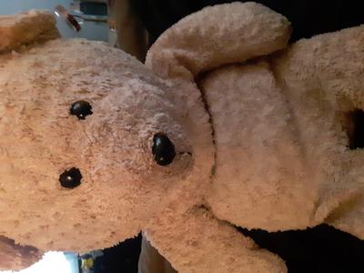 I have had this bear for over 22 years now. I've had it since I was a kid before I even started school. The thing is I don't remember getting this bear just always having it. I looked online, rephrasing my words and even attempting a backwards Google search but I literally got 0 results back. In the picture, he looks a bit thin for a teddy bear but I remember when I got him he was plump, his nose is hard and it used to have a felt like fabric on it but alot of that is gone now due to time, and he also has these hard black eyes. Can anyone pin point where this bear came from?