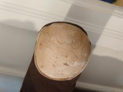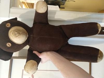 So dating it causes me confusion because the leather button eyes indicates it may be old but I'm not sure if they had foam way back when.