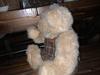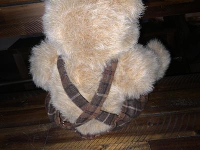 it feels rough, but not too rough, just enough to make a slightly more audible noise when you rub it than a regular bear. also notable, it has no claws or embroideries and if it has a growler, the growler is broken. it is jointed, and the limbs stay in place when positioned, unlike some of the boyds’ bears. not super cuddly, more of a display piece than something to sleep with.