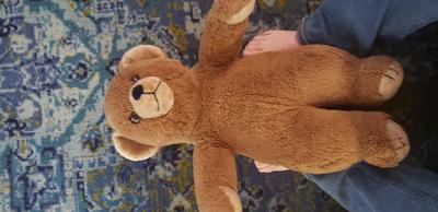 I don't know much about my bear. I was born in 1987, and my uncle picked this up at a flea market around that time. The bear is 23 inches tall and has plastic eyes. My mother has restuffed him a few times over the years, so I can't tell you the original stuffing. The closest similar bear ive been able to find via an image search is an "AG Bear" but I'm almost certain it is not. To my knowledge its never had a voicebox.