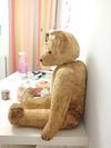 This is Victor. He was found in my grandmother's house attic, in France. My grandmother says he did not belong to her and is probably older. She is 80. According to my research he might be as old as 1910/1920. My grandmother says it was probably a gift from her godfather, and he might've bought it in Germany. Covered in short fur. Paws are furry as well, different color from the body. Glass eyes. Articulated at the shoulders and hips. No brand tag. Eyes originally brown, mostly lost their color.