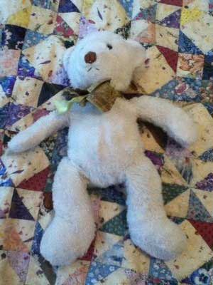 This is my teddy bear that I got for my 6 month birthday and I still have him. He used to be all fluffy and soft but most of his fur is matted down. The only thing that is still soft and fluffy is the inside of his ears. I believe there is no other bear like him. I love him more than anything else in the world.