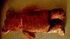 The eyes are googly and the snout is a painted hard plastic. He has a red ribbon bow around his neck