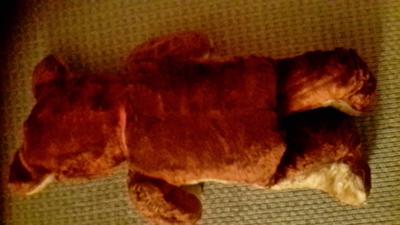 This Teddy bear came from my father's "old stuff". He was born in 1920, but I don't know how long he had it.