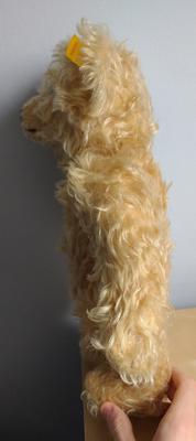 This bear is golden-brown in colour, almost exactly 30cm (1ft) high. There is a number which I think is a serial number hidden on the label, reading 101040302640.