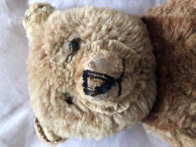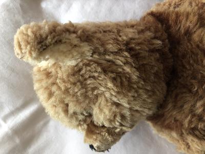 Teddy has been repaired a couple of times in the 1960s by a man doing upholstery. Couldn’t sleep until I got my Teddy back from repairs.