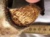 Materials; dark brown sheep fur, paws black suede, eyes glass, nose stitched black wool, filling wood wool.