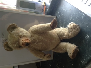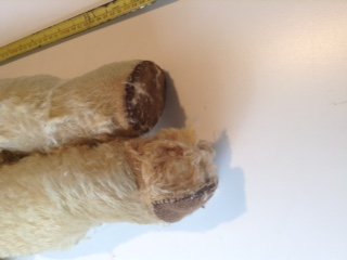 Hello, this bear belonged to my grandfather who was born in 1908. This was a birthday present for him. We are unsure of the manufacturer but think it was made in Germany.