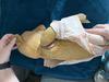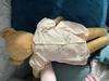 When squeezed she doesn’t feel soft or squishy, more like stiff, so I don’t think she’s stuffed with wool or kapok. She’s in a bit of a sorry state , bless her xxx