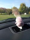 Roughly a ball shaped teddy, less than 6 inches in height.