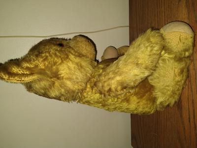 Hello. This bear that I have was my mother's and I inherited it when she passed 2 years ago. I have no clue about it. It has no markers on it. I do see evidence of a chest tag but it's no longer on. There is no button in the ear. But it's 17" from head to toe. It's a center seam on the chest but also the head. I can't find one like this one. My mother told me she's had that bear since she was a baby and she was born 1949. My great grandparents were romanian and hungarian. It's also golden mohair, the brown and black eyes. Nose is stitched vertically. Muzzle is small and looks shaved. I have pics to send to show you. I'm just wondering if it's worth anything. I have more pictures if needed.