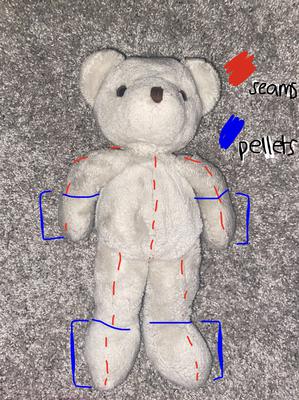This is my childhood teddy bear given to me around 2005. It has plastic, brown eyes, a brown nose and once had a blue and white tag on the butt, right under the tail. The feet, hands and butt of the bear have plastic pellets in it and the head and rest of the body are stuffed. I was living in Germany at the time and it was a gift from a family friend. I am 18 now and would love to know more about it and get the bear restored. Thank you so much for any information you may have!