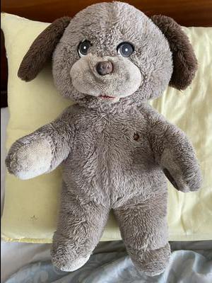 There are no labels or branding on him - identifiable features on him are the brown patch on his left paw (which can be squeezed) and the small orange light on his chest, which I think used to light up.